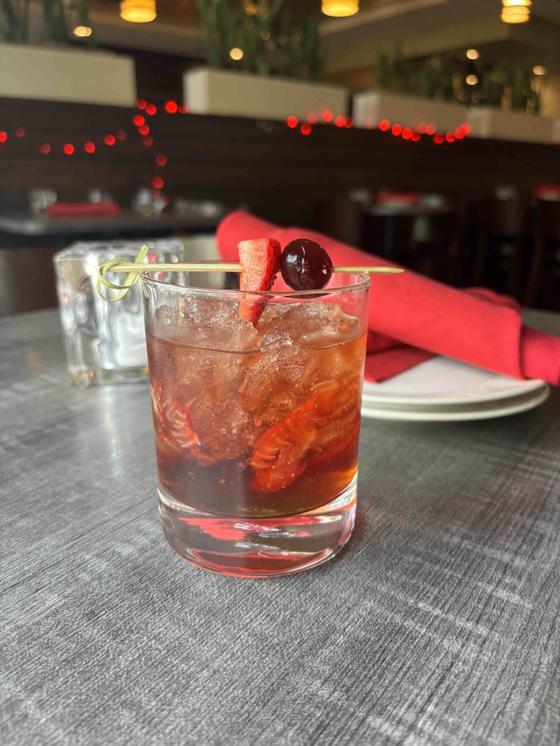 bird dog peanut butter whiskey, chambord, black walnut bitters, and muddled strawberries