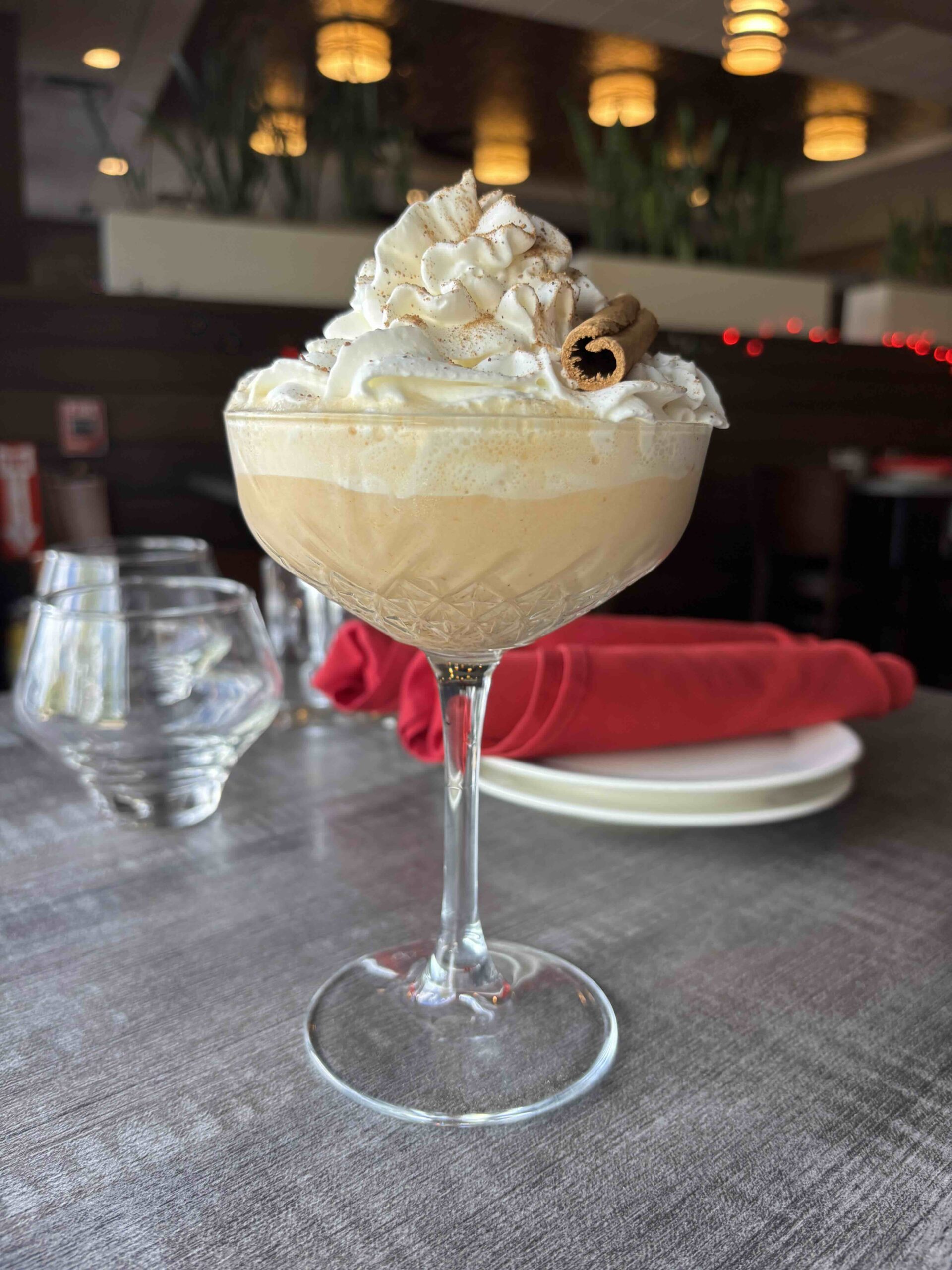 homemade pumpkin puree, vanilla vodka, rumchata, garnished with whipped cream, cinnamon & nutmeg sprinkle
